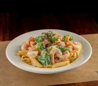 Molho de tomate, mussarela, filé de camarões salteados e catupiry, finalizada com salsa fresca.
