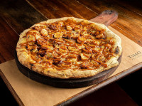 Pizza Bianca, mussarela artesanal, pêra laminada, gorgonzola,mel e nozes.