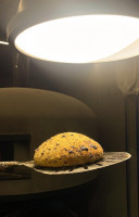 Delicioso pãozinho assado no forno a lenha recheado com chocolate meio amargo e deliciosa ganache de avelã com raspas de laranja.