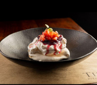 somente um sabor. (Base de chocolate branco assado, finalizada comfrutas vermelhas e raspas de chocolate branco).